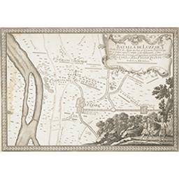 Batalla de Luzzara dada en 15. de agosto de 1702. al exercito imperial, que iva à ocupar aquel campo, y suè vechazado, y voto por el delas dos coronas que mandava personalmente el Rey Catholico Don Felipe Quinto : Felipe Palota. in[venit] & del[ineavit] : I. Berterham sculp[sit] Bruxellis. - Bruxellis : E.H. Fricx typ. Reg. excudit, 1703. - 1 carte : ill. ; 30 x 43 cm.