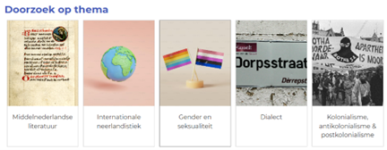 Zo kan je browsen in bronnen over gevestigde gebieden zoals dialect, religie en toponymie, maar kan je ook nieuwe thema’s ontdekken zoals gender & seksualiteit, vrouwenstudies, ecokritiek, disability studies en dierenstudies.