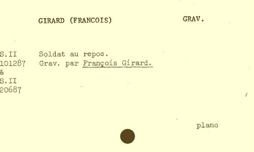 GIRARD (FRANCOIS) GRAV. Soldat au repos , Grav. par François Girard. plano.