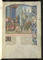 : 16 miniatures with border decoration and champ initials; red and blue pen-flourished initials ; 38.4 x 27.8 cm. - MS 21253 forms a set with MS 21252 and with MS IV 669, and contains the second part of book IV of La fleur des histoires. F. 1ra continues the last sentence in MS 21252. The miniatures are attributed to the Master of the Chattering hands. - VDG