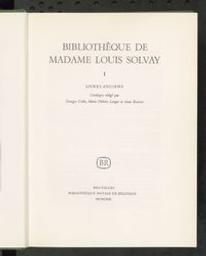 Bibliothèque de Madame Louis Solvay : catalogue / Liebaers, Herman ; I