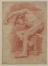 Academy study of a male nude [Drawing]. - [s.a.]. - 1 drawing : red chalk ; 425 x 305 mm. - Copy mentioned in Schnapper & Gouzi 2010 (cat. D95); A. - Mark Charles Gasc in red ink (Lugt 542). - Charles Gasc (Paris, ca. 1850); G. Cordier, Brussels; acquired in 1909.