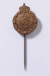 Een kroon boven de verstrengelde initialen van koning Albert I en koningin Elisabeth. Koninklijke monogrammen. Krans.