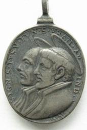 Borstbeelden in profiel naar links van de heilige Ignatius van Loyola en de heilige Franciscus Xaverius