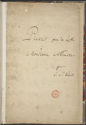 Pièces pour la Luth | à | Monsieur Schouster | par | J S Bach | f1v: Suite pour la Luthe. - [S.l.] : [s.n.], [s.n.]. - score ; 35 x 22 cm. - Cette suite pour le luth est un arrangement de la 5e suite pour violoncelle BWV 1011. RISM nr. 701000230. - HuysF 1972 , p.186-187, no.203. HuysG 1966 , p.121, no.77. FétisF 1877 , no.2910. BWV , p.555, no.995.