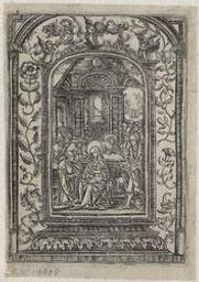 The Adoration of the Magi [Print]. - ca. 1519-1520. - 1 print : engraving ; 116 x 83 mm ; Folio. - In a border with flowers and columns. Iconclass code 73B57. The story of the three Wise Men (kings or Magi )(Matthew 2:1-12); adoration of the kings: the Wise Men present their gifts to the Christ-child (gold, frankincense and myhrr). Similarity with the series of Passion Scenes (A) in style and in dimensions; no monogram. - S.II 112398.