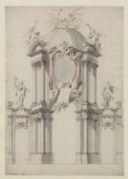 Triumphal arch erected behind the townhall of Brussels in 1720 on the occasion of the jubilee of the Sacrament of the Miracle [Drawing]