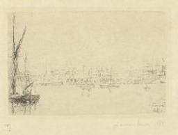 View of the Ostend harbour [Print]. - 1 print : etching ; 78 x 113 mm. - James Ensor; catalogue illustré de ses gravures leur description critique et l'inventaire des plaques. Aug. Taevernier ; 9B/2003/1032 ; Tavernier 1999, 39; Delteil 1925, 39; Croquez 1933, 39. - S.III 68831.