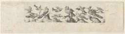 Frieze with eleven birds; an owl at centre [Print]. - S.d ; S.l : S.n. - 1 print : Engraving ; 36 x 182 mm. - (Friezes with birds). - S.IV 86329.