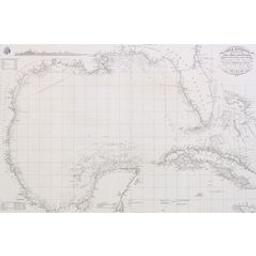 Carta esferica de las costas del Seno Mexicano con parte de la isla de Cuba y canales adyacentes [Document cartographique] : construido por D. Felipe Bauzá en 1829 : adiccionada y corregida en la Direccion Hidrografica y presentada á S.M. la Reina Gobernadora por el Exmo. S. D. Juan Alvarez y Mendizabal secretario de Estado é interino del Despacho de Marina. - Madrid : Direccion Hidrografica, 1836. - 1 carte : légende, tab. ; 60 x 90 cm. - Ex-libris EGB: "156".