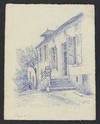 Perron d'une maison campagnarde à Virginal [Drawing]. - 1 drawing : encre bleue ; 30,5 x 24 cm. - R-2009-26349.