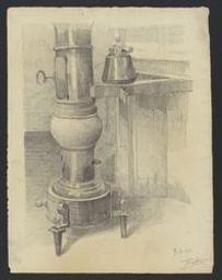 Etude de poële, avec bouilloire posée sur la buse [Drawing]