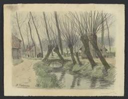 Tourneppe [Dworp] : petit canal bordé de saules, pont et maisonnettes [Drawing]