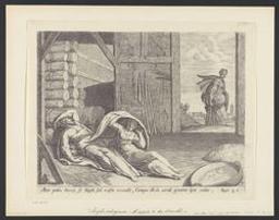 Ruth Places Herself At Boaz's Feet [Print]. - s.l : s.n, Before 1579. - 1 print : engraving ; 212 x 270 mm. - (The Story of Ruth). - Numbered 3. - H. 76 -79; NHD (Galle) 20. - S.V 95730.