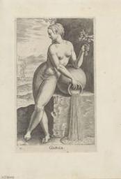 Garga : Fait partie du recueil "Nimpharum oceanitidum, ephydridum potamidum, naiadum, lynadumque icones" : Pl. 11 / gravé par Philippe Galle. - [Antwerpen] : [Philippe Galle], [1587]. - 1 print : engraving ; 164 x 99 mm. - (Nymphs). - NHD 441. - H. 299 -315; NHD (Galle) 441. - S.V 88399.