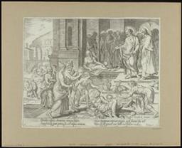 The Death of Sapphira [Print]. - s.l : s.n, [1575]. - 1 print : engraving ; 214 x 276 mm. - (The Acts of The Apostles). - Numbered 7. - H. 206 - 240; NHD (Van Heemskerck) 400; NHD (Galle) 194. - S.I 55794.