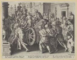 The Triumph of Hersilia [Print] / engraved by Theodoor Galle, after Johannes Stradanus. - [Antwerpen] : Philips Galle, [ca. 1595]. - 1 print : engraving ; 215 x 279 mm (plate). - (Famous Roman Women: no. 4). - Numbered 4 in the lower right corner.