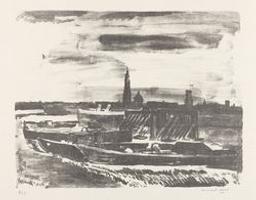 Bateaux à quai à Anvers [Print] / par Armand Apol. - lithographie au lavis. - Tirage signé et numéroté 3/15.